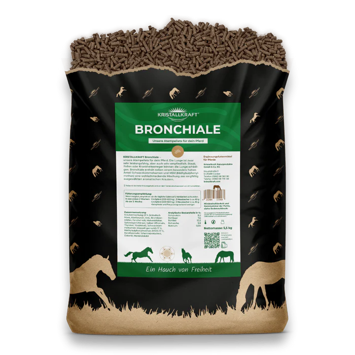Unsere herzliche Empfehlung Kristallkraft Bronchiale lässt sich einfach in die tägliche Fütterung integrieren. Gerade in den kalten Monaten oder bei trockener Stallluft kann eine ausgewogene Fütterung einen wertvollen Beitrag zum Wohlbefinden deines Pferdes leisten.